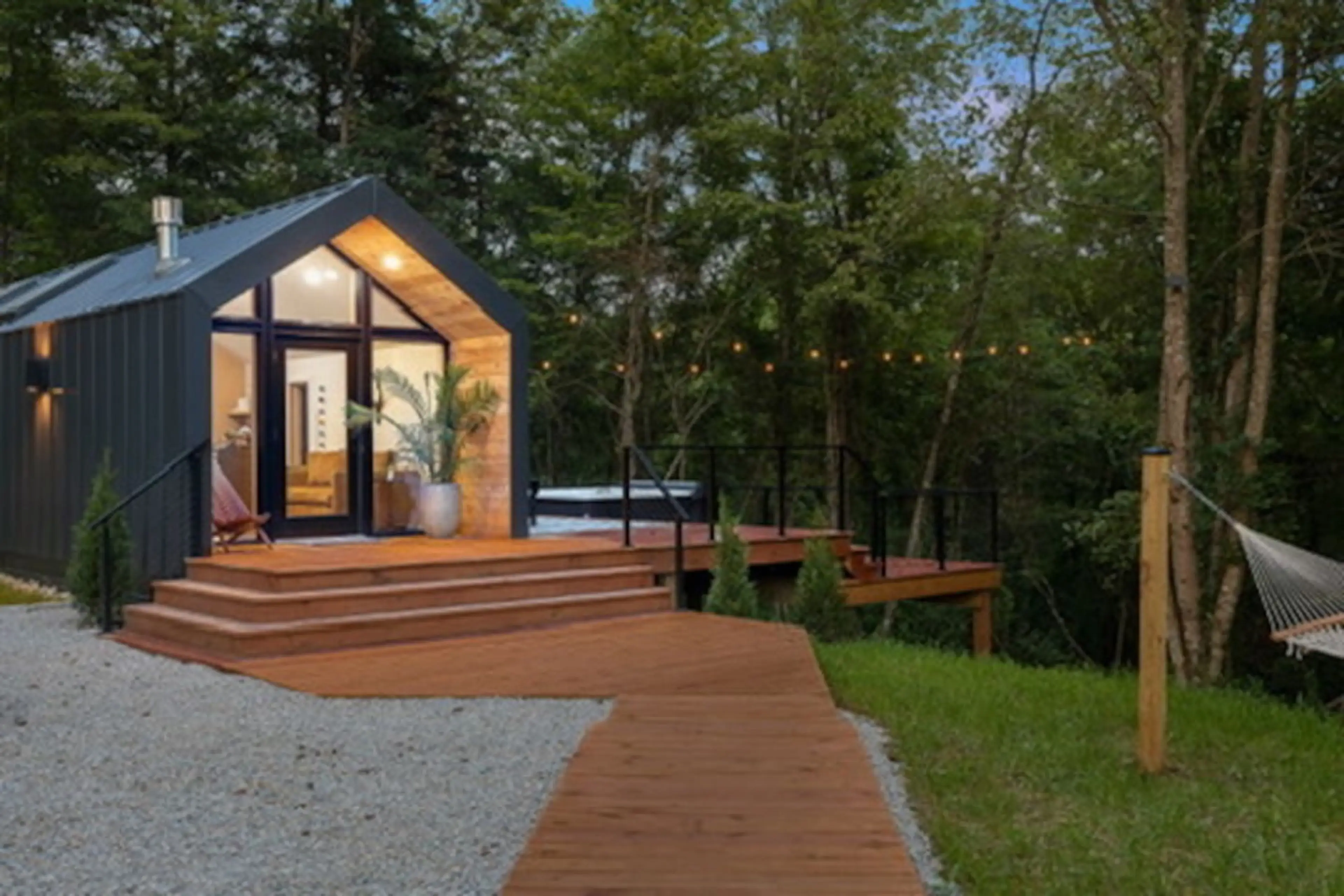 Escape to The Grove at Saving Hollow. A modern, thoughtfully designed cabin just 3 miles from magical waterfalls and breathtaking hiking trails in Hocking Hills. This peaceful, secluded retreat features a hot tub, cozy gas fireplace, fire pit, hammocks, and a coffee bar for slow mornings. Perfect fo...